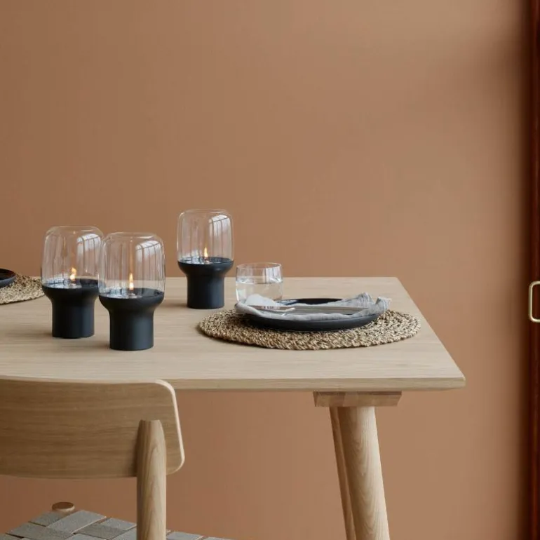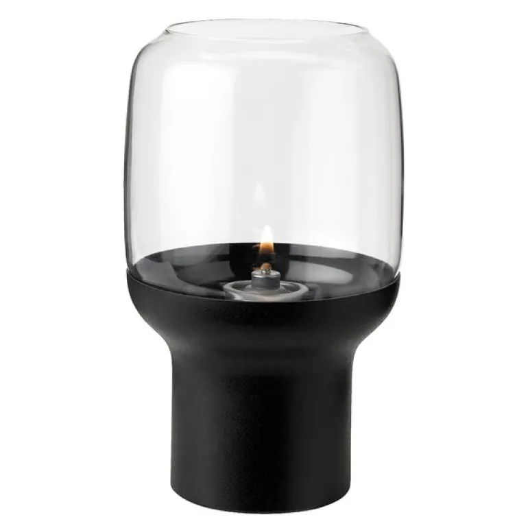 Hoop hurricane-lykten kombinerer de myke linjene i glasset med det kjølige uttrykket av stål, noe som gjør den til selve innbegrepet av godt design. Flammenes dansende lys bak glasset skaper en beroligende og behagelig atmosfære i rommet. Med sitt klassiske design passer den svarte lykten inn i nesten enhver interiørstil, og den er like vakker alene som i par. Lykten er også praktisk og enkel å ta fra hverandre, noe som gjør rengjøring og tenning av vegetabilske oljelys enkelt.