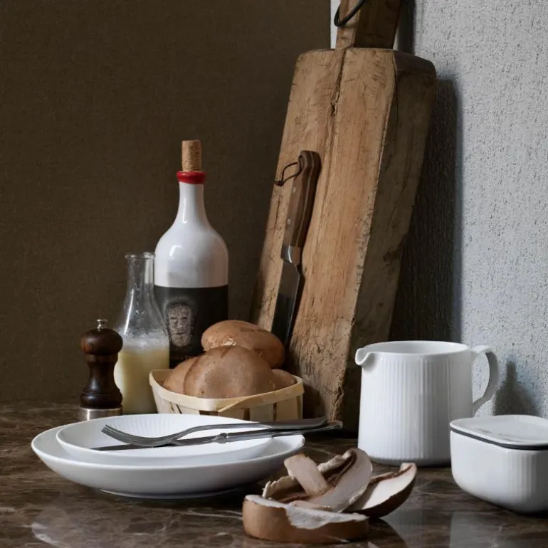 Hvit Riflet forteller historien om kongelig porselen og håndverk i en minimalistisk og moderne stil. Resultatet? En moderne klassiker. Dens rene hvithet og enkle design gjør den ideell å kombinere med andre riflede design. For de som liker å nyte livet uten at det går på bekostning av kvalitet, er Hvit Riflet et ideelt hverdagsservise for det moderne hjem. Elegant og enkelt. Grunndesignet er identisk med servisene Musselmalt Riflet, Blå Mega Riflet og Hvit Signatur. Det passer godt sammen med disse – men er også moderne og elegant på egen hånd! Porselen. Designet av Royal Copenhagen. Produsert siden 2014.
