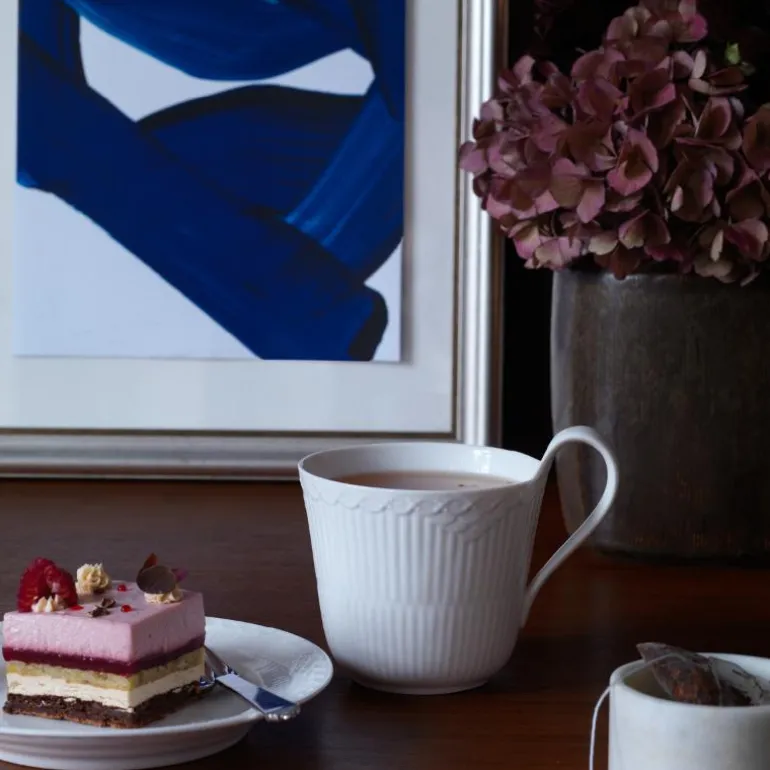 Denne koppen kan enkelt kombineres med andre riflede mønstre som Blue Fluted Plain, Blue Fluted Mega og White Signature, eller den kan stå alene for et rent og sofistikert uttrykk. Med sin store kapasitet og komfortable hank er koppen ideell for dem som ønsker å nyte livet med stil uten å gå på kompromiss med kvaliteten. White Fluted Half Lace tilbyr en harmonisk balanse mellom kongelig håndverk og moderne estetikk – en vakker hverdagsluksus for det moderne hjemmet.