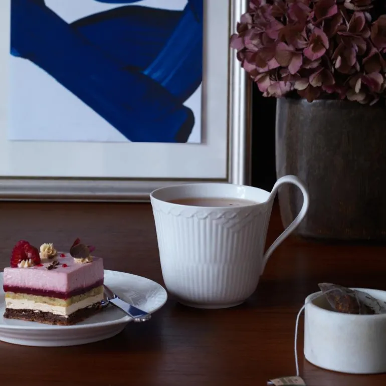 White Fluted forteller historien om kongelig porselen og håndverk med en minimalistisk stil, som gjør det enkelt å kombinere med andre riflede mønstre som Blue Fluted Plain, Blue Fluted Mega og White Signature. Denne tallerkenen er ideell for hverdagsbruk i det moderne hjemmet for dem som verdsetter både funksjonalitet og høy kvalitet. Serien fungerer nydelig alene, men kan også blandes med andre mønstre for en variert og stilfull borddekking.