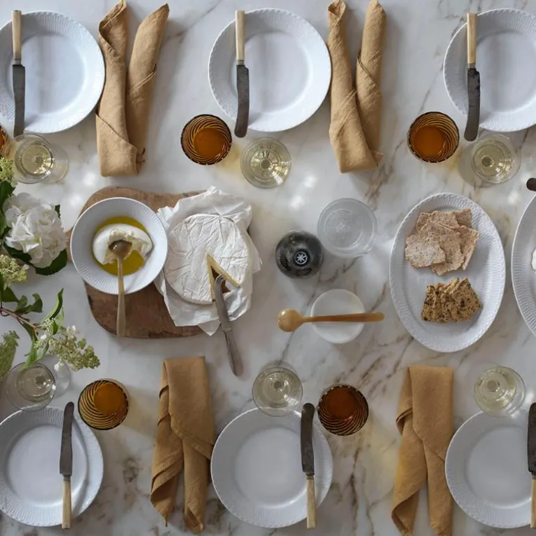 Den rene hvite fargen og de subtile detaljene gjør tallerkenen ideell å kombinere med andre servisemønstre som Blue Fluted Plain, Blue Fluted Mega og White Signature. White Fluted Half Lace er likevel vakker og selvstendig i sitt uttrykk, og skaper en elegant ramme rundt måltidet. Dette gjør den til et fleksibelt servise som passer ethvert bord og enhver anledning.
