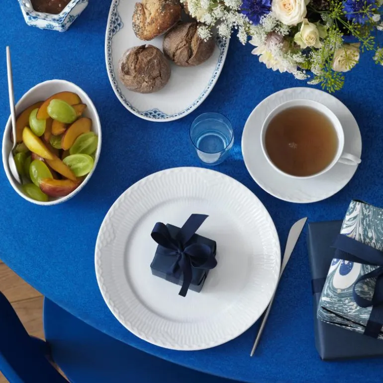 White Fluted Half Lace tallerken på 25 cm fra Royal Copenhagen er en tidløs og elegant del av serviset, preget av sitt delikate blondemønster som gir en moderne klassiker et hint av tradisjon. Serien White Fluted Half Lace kombinerer minimalistisk stil med kongelig håndverk, og den rene, hvite fargen gjør det enkelt å matche tallerkenen med andre riflede mønstre som Blue Fluted Plain, Blue Fluted Mega og White Signature.