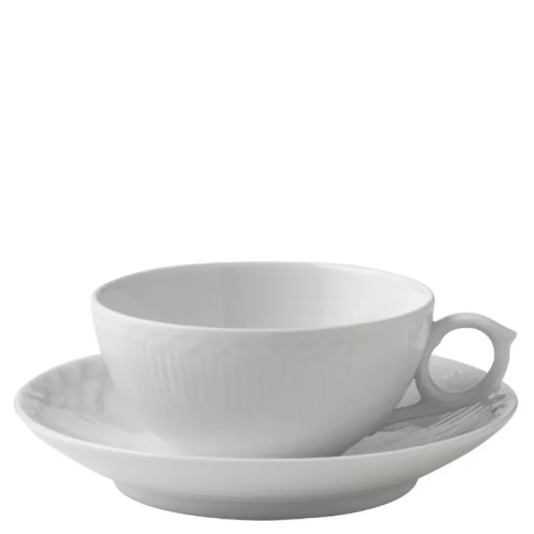 White Fluted Half Lace Tekopp med fat på 20 cl fra Royal Copenhagen er en utsøkt del av den tidløse White Fluted-serien, kjent for sitt vakre blondemønster som gir et sofistikert og moderne uttrykk. Med sin rene hvite farge og minimalistiske stil, representerer denne tekoppen en harmonisk balanse mellom kongelig porselenstradisjon og moderne design, noe som gjør den til et perfekt valg både til hverdagsbruk og spesielle anledninger.