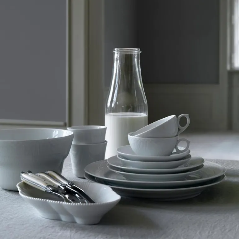 Den elegante utformingen gjør koppen ideell for å kombineres med andre riflede mønstre som Blue Fluted Plain, Blue Fluted Mega og White Signature, eller den kan stå alene for en ren og enkel borddekking. White Fluted Half Lace er et perfekt servise for dem som verdsetter kvalitet og stil i det moderne hjemmet – et vakkert symbol på enkel eleganse og håndverk som kan nytes hver dag.