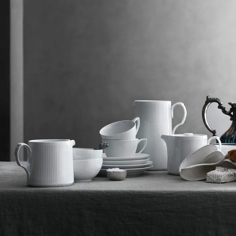 Hvit Riflet forteller historien om kongelig porselen og håndverk i en minimalistisk og moderne stil. Resultatet? En moderne klassiker. Dens rene hvithet og enkle design gjør den ideell å kombinere med andre riflede design. For de som liker å nyte livet uten at det går på bekostning av kvalitet, er Hvit Riflet et ideelt hverdagsservise for det moderne hjem. Elegant og enkelt. Grunndesignet er identisk med servisene Musselmalt Riflet, Blå Mega Riflet og Hvit Signatur. Det passer godt sammen med disse – men er også moderne og elegant på egen hånd! Porselen. Designet av Royal Copenhagen. Produsert siden 2014.
