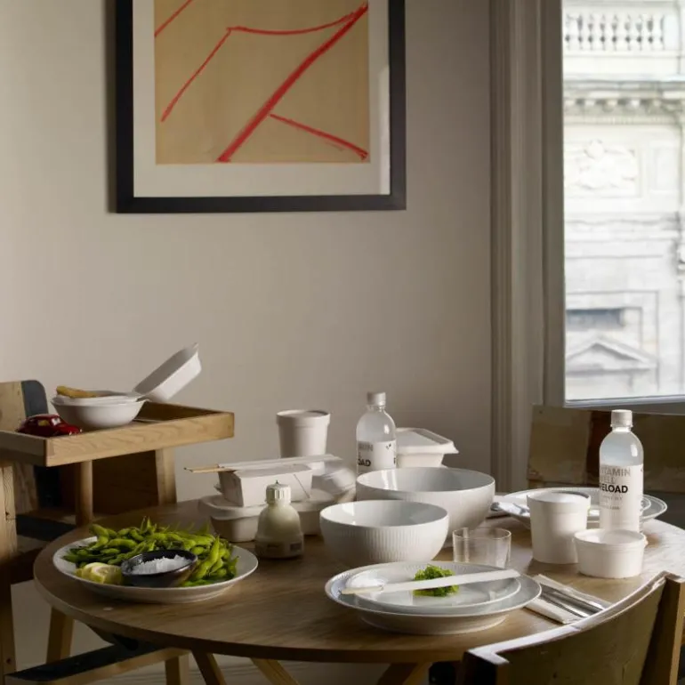Hvit Riflet forteller historien om kongelig porselen og håndverk i en minimalistisk og moderne stil. Resultatet? En moderne klassiker. Dens rene hvithet og enkle design gjør den ideell å kombinere med andre riflede design. For de som liker å nyte livet uten at det går på bekostning av kvalitet, er Hvit Riflet et ideelt hverdagsservise for det moderne hjem. Elegant og enkelt. Grunndesignet er identisk med servisene Musselmalt Riflet, Blå Mega Riflet og Hvit Signatur. Det passer godt sammen med disse – men er også moderne og elegant på egen hånd!
