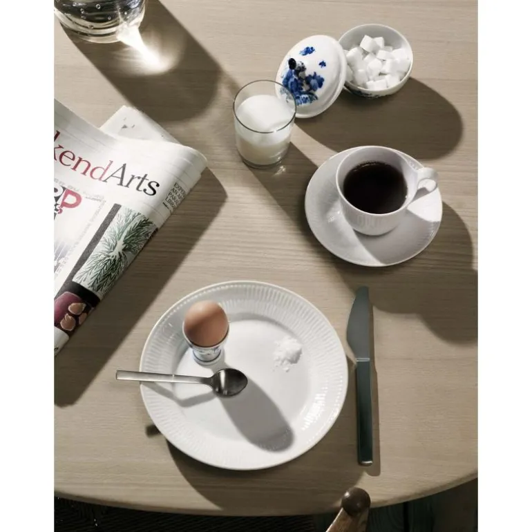 Hvit Riflet forteller historien om kongelig porselen og håndverk i en minimalistisk og moderne stil. Resultatet? En moderne klassiker. Dens rene hvithet og enkle design gjør den ideell å kombinere med andre riflede design. For de som liker å nyte livet uten at det går på bekostning av kvalitet, er Hvit Riflet et ideelt hverdagsservise for det moderne hjem. Elegant og enkelt. Grunndesignet er identisk med servisene Musselmalt Riflet, Blå Mega Riflet og Hvit Signatur. Det passer godt sammen med disse – men er også moderne og elegant på egen hånd!