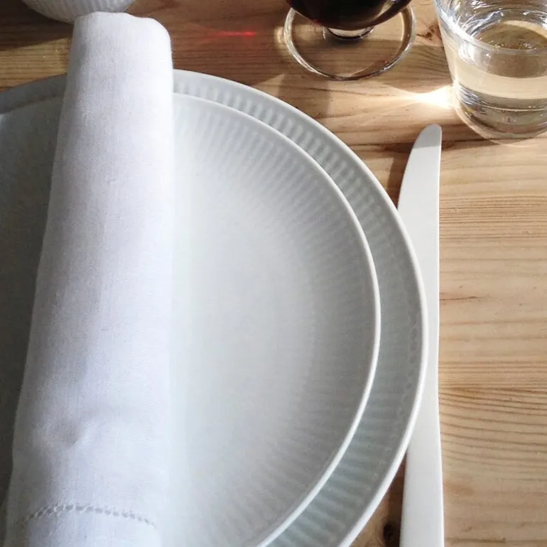 Hvit Riflet har vært en del av Royal Copenhagens sortiment siden 2014, og viderefører arven etter over 240 års porselensproduksjon. Tallerkenen er laget i porselen og er utviklet for daglig bruk uten at det går på bekostning av det estetiske.