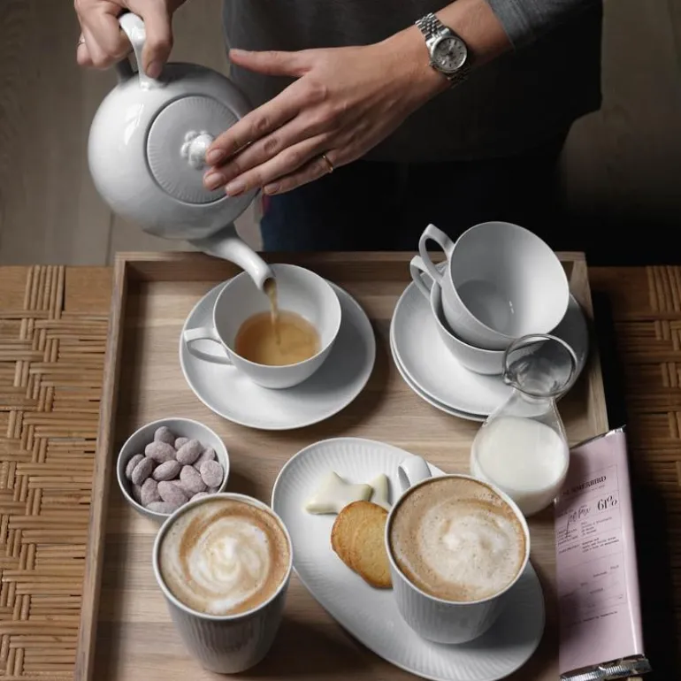 Hvit Riflet forteller historien om kongelig porselen og håndverk i en minimalistisk og moderne stil. Resultatet? En moderne klassiker.
