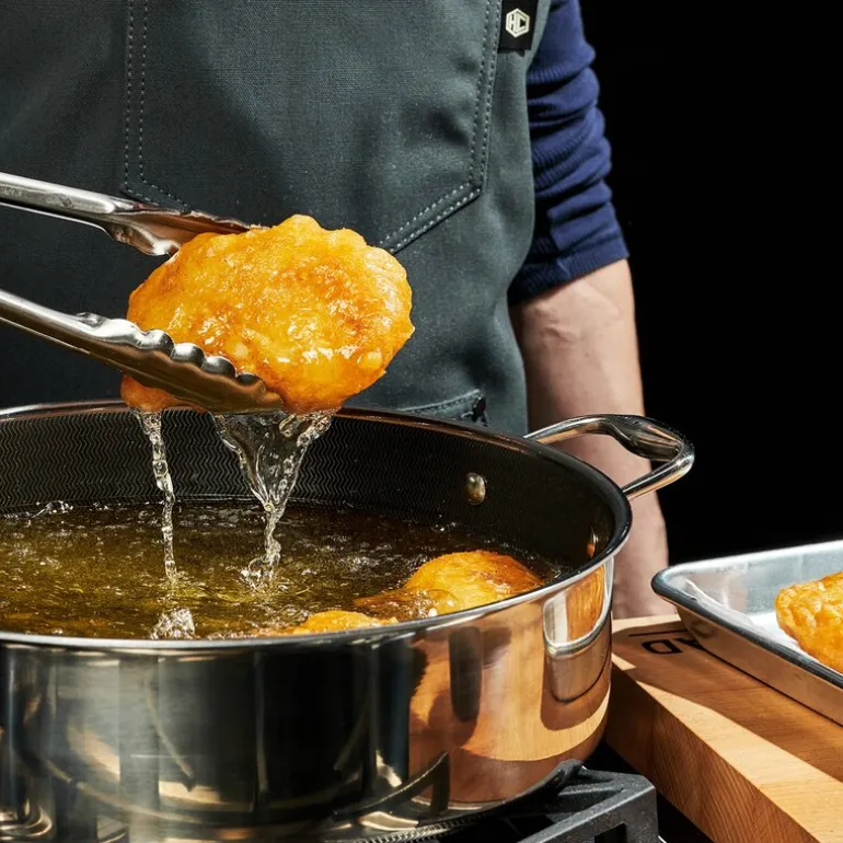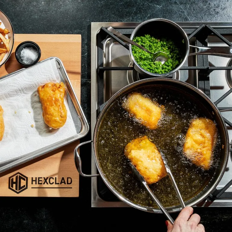 Anbefalt av den anerkjente kokken Gordon Ramsay, er denne frityrpannen en pålitelig partner for både daglig matlaging og spesielle anledninger. Hexclads Hybrid Frityrpanne er ikke bare et praktisk redskap; den er en sentral aktør som vil løfte dine kulinariske ferdigheter og hjelpe deg å lage smakfulle og perfekte retter, hver gang.