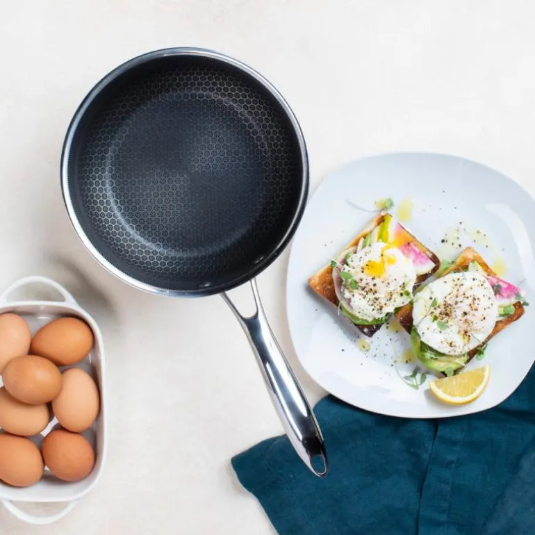Med Hexclad kan du tilberede alt fra den mest delikate fisken til en saftig og perfekt brunet biff uten å bekymre deg for hvilken stekepanne eller gryte du skal benytte. Siden du har fordelen av en vanlig non-stick stekepanne og en stålpanne, trenger du kun bruke et minimum av stekefett samtidig som du kan bruke metallredskaper rett i pannen eller gryten.