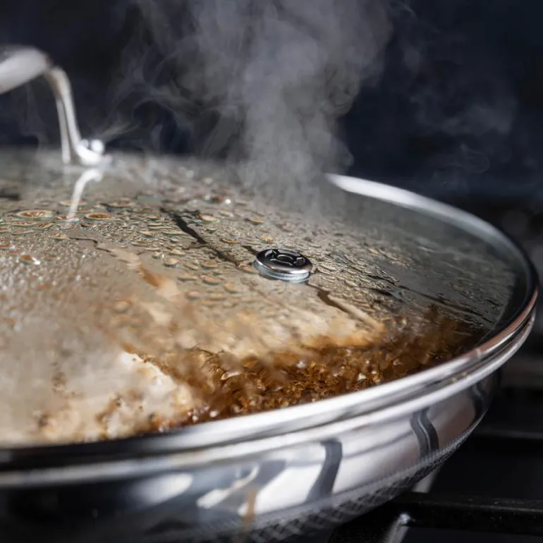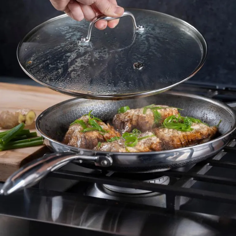 Glasslokk som passer alle Hexclad 30 cm produkter. Praktisk med glass slik at man kan enkelt kan holde oversikt over maten. Lokket har ventilasjonshull og har stay-cool håndtak.