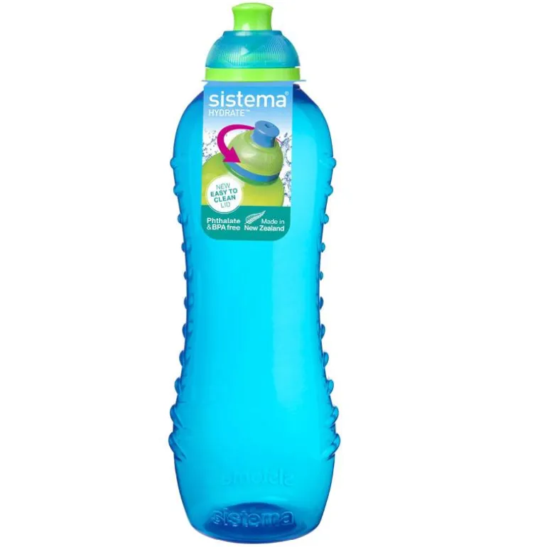 Drikkeflaske, Hydration 620 ml fra Sistema. Sistema Twist ‘n’ Sip Bottles har et unikt lokk som gjør at flasken kan åpnes og lukkes uten at fingrene berører glidelåsetippen – en mer hygienisk måte å drikke på. Perfekt flaske til skole, sport, piknik og dager ut.