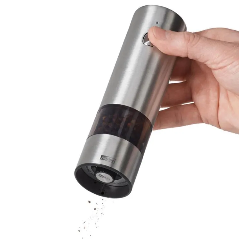 i.Mill elektrisk krydderkvern fra AdHoc kombinerer høyteknologisk funksjonalitet med et stilrent design for kjøkkenet og spisebordet. Denne kvernen, laget i elegant sølvfinish, drives av et oppladbart litiumbatteri, og leveres med en matchende USB-C-ladekabel. Med et enkelt knappetrykk kan du styre kvernen med én hånd, noe som gjør det enkelt og praktisk å krydre maten akkurat slik du ønsker.