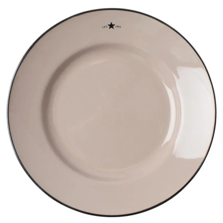 Icons tallerken 22,5 cm beige/blå fra Lexington. En fin glans kombinert med en organisk fargenyanse gir denne asjetten et moderne uttrykk. Den er produsert i Portugal av finkornet leire som er brent ved høy temperatur for å gi den fine glansen. Merkenavnet og etableringsåret står øverst, mens en håndmalt kant følger ytterkanten av denne asjetten.