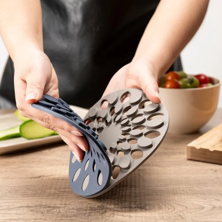 Lekker bordskåner produsert av silikon. Praktisk design som gjør at den kan tas fra hverandre og bli til 2 bordskånere. Beskytter bordflaten mot riper, fukt – og svimerker. Tåler opptil 230°C.Kan rengjøres i oppvaskmaskin.Mål: 16 x 16 cm
