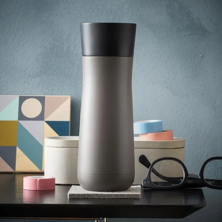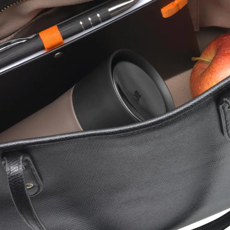 Ringe, lese, spise, drikke: Fordi vi er så mobile som aldri før, utfører vi i stigende grad alle yndlingsbeskjeftigelsene våre ute i offentligheten – især det å drikke kaffe. Men i stedet for å drikke den daglige kaffen eller teen på farta fra en pappkopp, finnes det med termokopp-kolleksjonen IMPULSE fra WMF et bærekraftig alternativ så du til enhver tid kan nyte yndlingsdrikken din varm og dessuten gi den et helt individuelt preg. Det starter allerede med designet. Formen på beholderen med 0,35 liters volum er moderne, nesten puristisk, og fargevariantene er matt antrasitt til svart og rustfritt stål og vintage-kobber. Dessuten sikrer den smarte 360-graders åpningen at drikken kan nytes fra alle sider og minimerer samtidig risikoen for å søle. Og best av alt: Den isolerende kjernen med dobbeltvegg inni koppen på variantene av rustfritt stål sikrer at drikken holder den samme temperaturen i timevis – både varm og kald. USP1 Holder drikkevarer varme i opptil 8 t og kalde i opptil 12 t. USP2 360-graders åpningen sikrer, at drikken kan nytes fra alle sider og minimerer samtidig risikoen for å søle. USP3 Fargevariantene er matt antrasitt til svart og rustfritt stål og vintage-kobber. USP4 Kapasitet (l): 0,35. USP5 Cromargan® rustfritt stål 18/10.