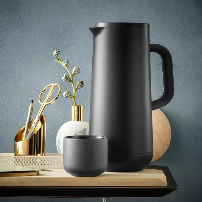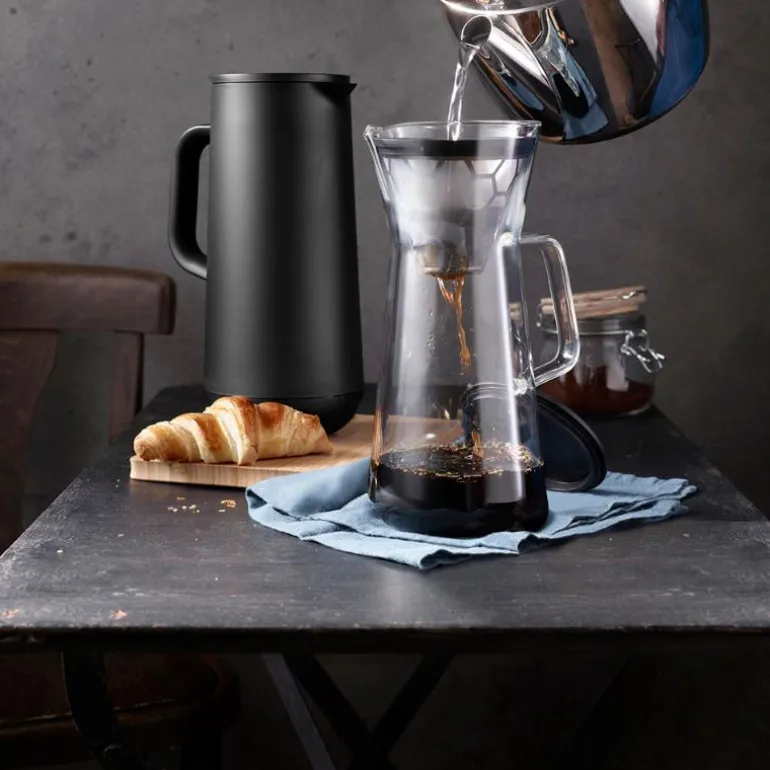 De har det i seg! Isoleringskannene fra WMF-kolleksjonen Impulse sørger for at du alltid kan nyte din varme eller kalde drikk. Uansett hvor varmt eller kaldt det er utenfor, så gjør isoleringskjernen av kvalitetsglass alltid nytten sin. Glem alt om kald kaffe, for til og med etter 12 timer i kannen har den varme drikken fortsatt en temperatur på over 70 grader. Automatisk lukking og vrilukking sørger for en tett lukking og sikrer at du kan skjenke drikken din uten å dryppe og søle. Det prisbelønte designet er i høy grad noe man legger merke til: Et moderne design med moderne farger kombinert med metallic-effekt gjør hele kolleksjonen til en fryd for øyet.