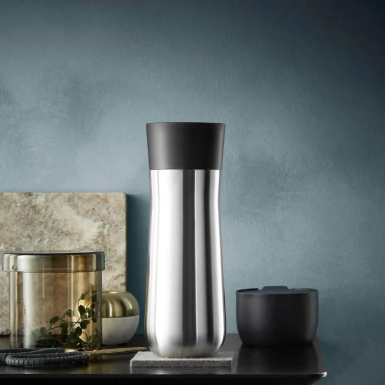 WMF Impulse termokopp er din stilige, miljøvennlige følgesvenn i hverdagen. Den har et unikt, prisvinnende design som er både elegant, moderne og ergonomisk for en perfekt håndtering. Dens enestående ThermaPro dobbeltveggede isoleringskjerne holder drikken varm i opptil 8 timer eller kald i opptil 12. Dermed kan du nyte drikken din hele dagen ved en perfekt temperatur. Koppen har også en praktisk 360° åpning så du kan drikke fra alle vinkler. Lett å rengjøre for optimal hygiene. Termokoppen har et avtakbart 100 % lekkasjesikkert lokk og en kompakt størrelse som passer til de fleste bilers koppholdere – noe som gjør den ideell til livet på farten.