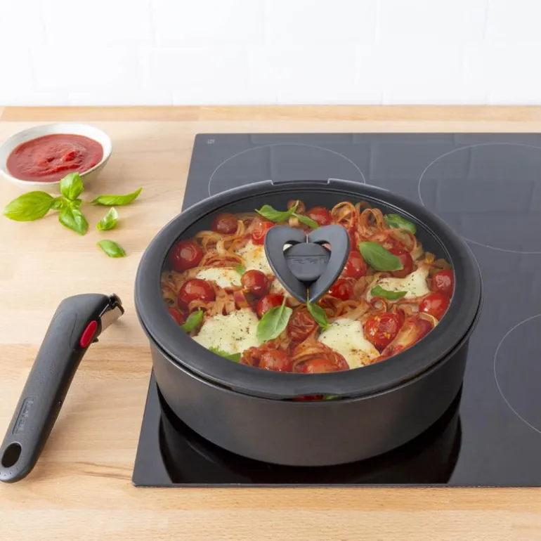 Glasslokk 24 cm i Ingenio serien til Tefal. Fra koketoppen til ovnen, til bordet, kjøleskapet eller oppvaskmaskinen, er Ingenio løsningen for alle som ønsker allsidig utstyr. Disse glasslokkene er fullstendig kompatible med Ingenio gryter, sautépanner og wokpanner. De har geniale, sammenklappbare knotter og et plassbesparende design som gjør at de kan stables for enkel oppbevaring.