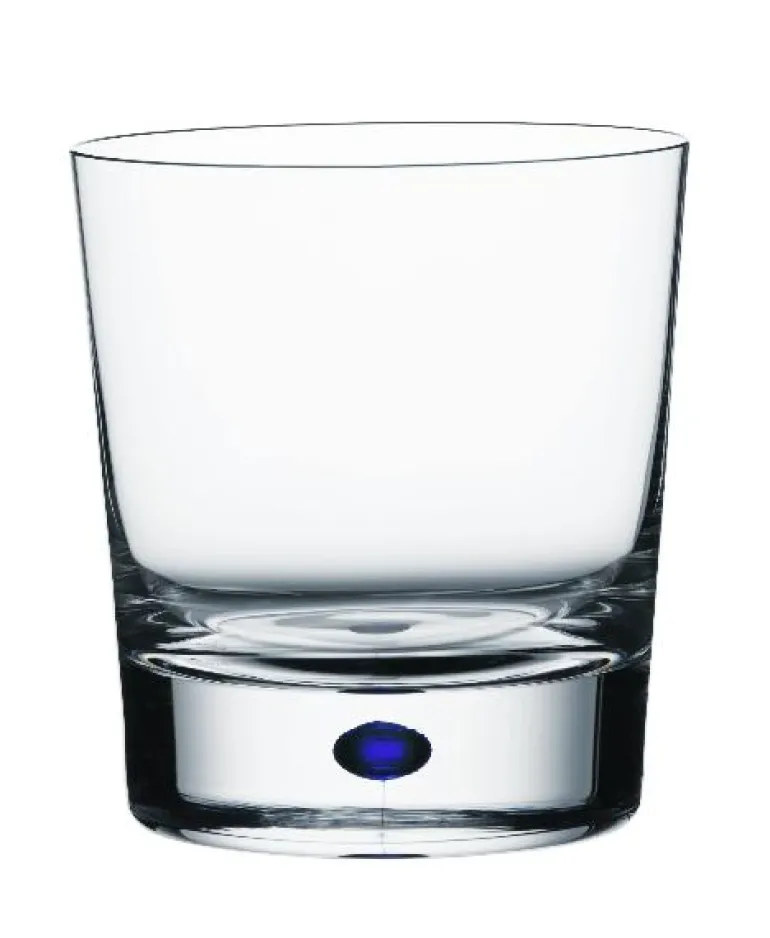 Munnblåst serviceglass dobbel whiskey, blå dråpe i stett.