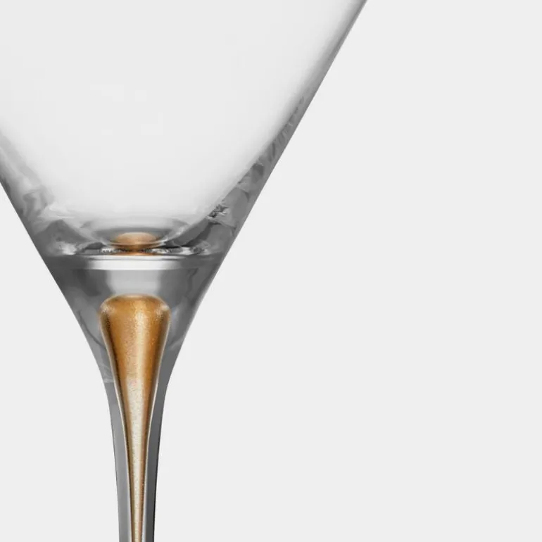 2stk. Intermezzo martiniglass 25cl i fargen gull fra Orrefors. Våre håntverkere og Erika Lagerbielke har lenge forsøkt å fylle Intermezzos karakteristiske boble med gull pgment. Endelig finnes den her, innbakt i det kystallklare glasset – en matt gull skimrende dråpe. Martini glasset som rommer 25 cl er et glass som passer for servering av ulike coctails som Dry Martini og Cosmopolitan. Glasset er munnblåst i Sverige av våre dyktige glassblåsere. Design av Erika Lagerbielke.