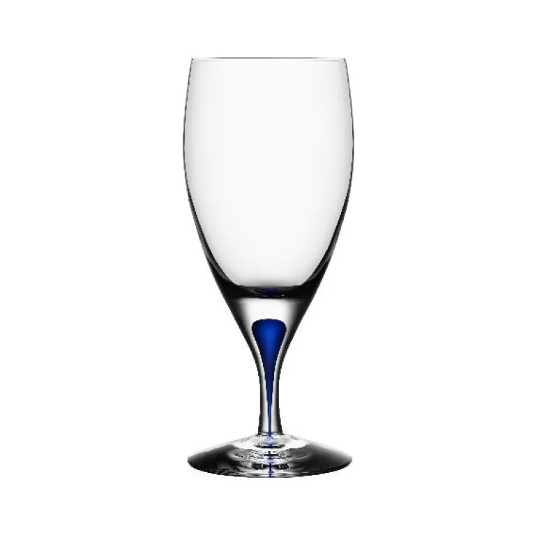 Munnblåst serviceglass, vann, høy, blå dråpe i stett.