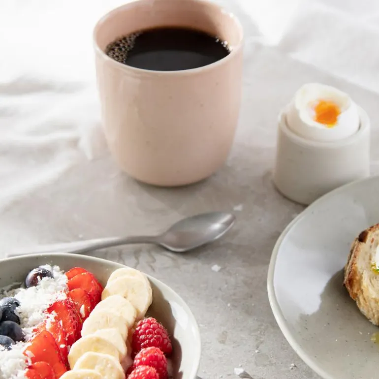 Suppler gjerne med flere deler fra Iris-serien, som tallerkener, boller og eggkopper, for å skape en komplett frokostdekkning.