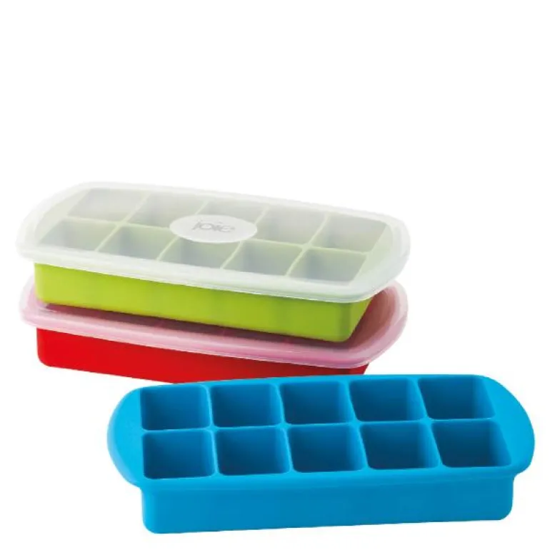 Praktisk isbrett til 10 isbiter fra Joie. Isbitformen er utført i silikon og kommer med sølesikkert lokk som holder isbitene rene og fri for lukt.