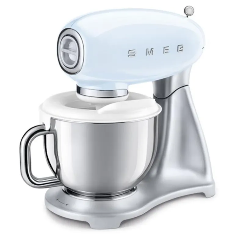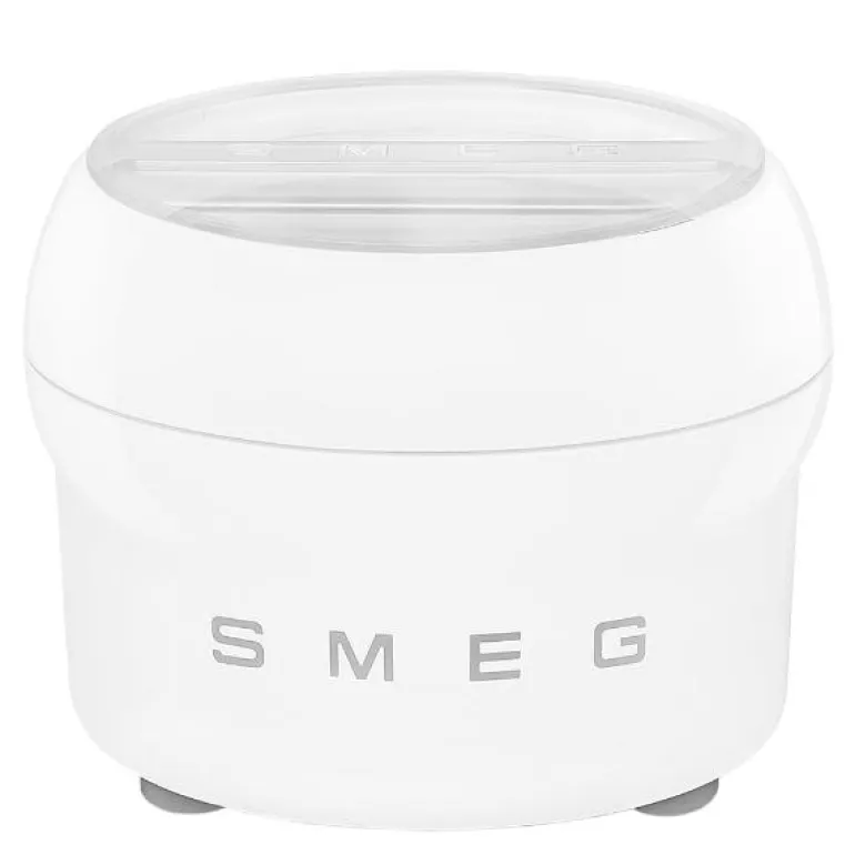 Iskremmaskin – laget for bruk sammen meg Smeg kjøkkenmaskiner. Her kan en lage seg alt fra iskrem, sorbet og frozen yoghurt. Frys ned beholderen minst 18 timer før bruk og monter foran på din kjøkkenmaskin. Det tar 20-30 minutter å tilberede. Den er 30 cm i diameter og 30 cm høy og kapasitet er 1,1 liter. Laget av PP plast og 18/0 stål. Kan vaskes i oppvaskmaskin.