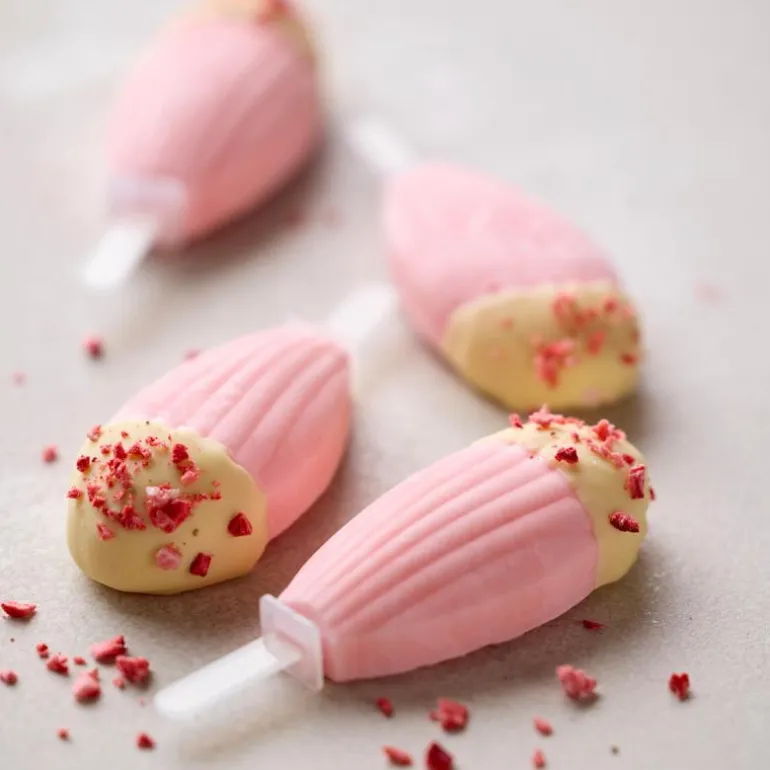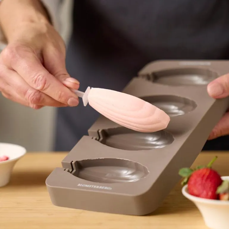 Ispinneform 4 stk madeleine latte silikon, fra Blomsterbergs. Denne ispinneformen av mykt og fint silikon har plass til fire hjemmelagde ispinner. Fyll formen med favorittsaften din, en smoothie eller en iskremblanding. Sett plastpinnene som medfølger, ned i formen, og la fryseren gjøre resten av jobben. Når sulten melder seg, vipper du enkelt ispinnene ut av den fleksible silikonformen. Formen tåler fryseboks (maks. -20 °C) og kan enkelt rengjøres i oppvaskmaskin.