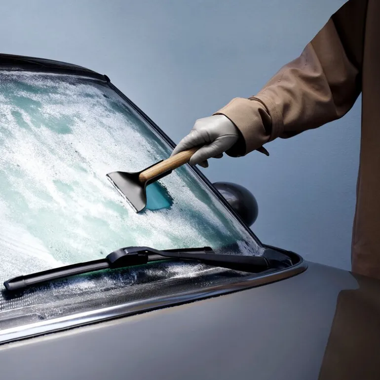 Isskrapen fra Eva Solo er en stilren og funksjonell løsning for å holde bilrutene fri for is, snø og kondens. Det avrundede skaftet i eik ligger godt i hånden og gjør skrapingen både effektiv og behagelig.