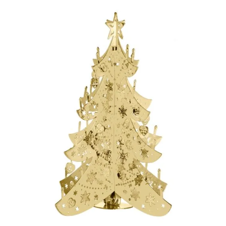 Istind dekor fra Holmen er et vakkert og detaljert juletre i gullfarget metall som gir hjemmet et glitrende preg. Med sine mål på 12×9 cm er dette treet ideelt som en diskret, men stilfull dekorasjon i julen.