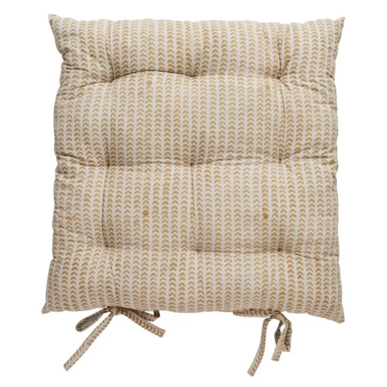 Den ene siden har et blokktrykt mønster som gir et eksklusivt preg, mens baksiden er i en matchende ensfarget tone for enkel styling. Perfekt som et dekorativt og funksjonelt element på kjøkkenstoler, i stuen eller på uteplassen. Puten er skapt for å passe perfekt til Norah-stolene.