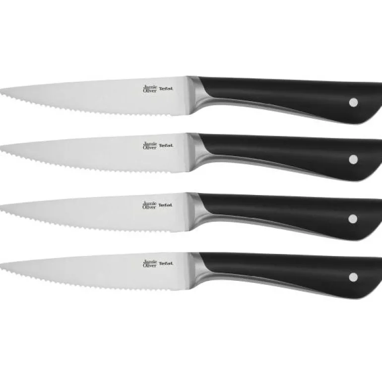 «Takket være disse biffknivene av høy kvalitet, vil du – enten du er av typen som liker rå til medium eller godt stekt – enkelt skjære gjennom saftige biffer. Disse lekkerbitene med sagtannet blad og solid håndtak for komfort vil gjøre biffaftenen til en glede. Nyt maten!» Jamie Oliver.
