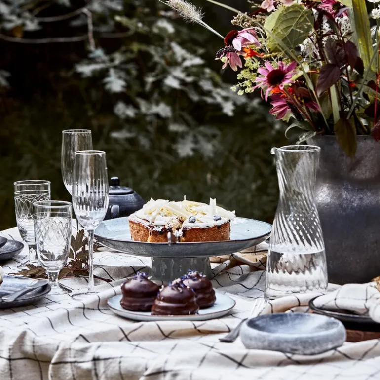 Join duk 260×150 cm fra House Doctor er den perfekte rammen for et stilfullt sommerbord. Duken er laget av en myk og slitesterk blanding av bomull og lin, og prydes av et tidløst rutemønster i svart og off-white som gir en moderne, men lun følelse.