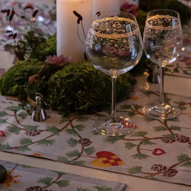 Juleglede bordløper 35×120 cm fra Ekelund skaper en varm og klassisk julestemning ved bordet. Den kan legges direkte på bordplaten eller oppå en duk.