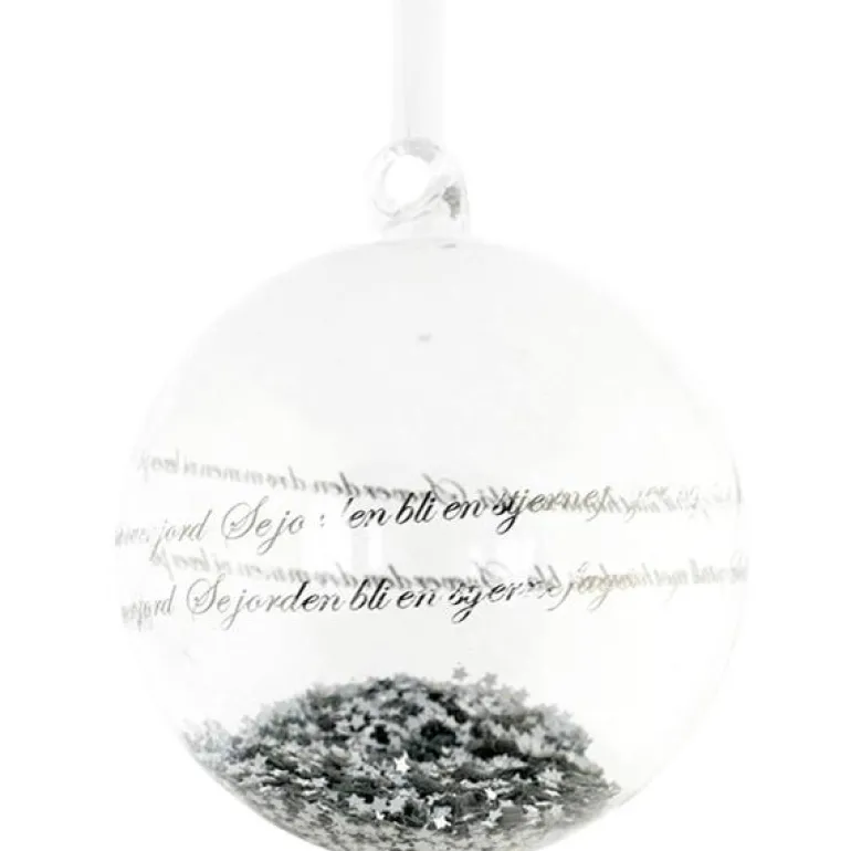 Se Ilden lyse julekule sølv 120mm. SE ILDEN LYSE er julekuler med stjerner og stjernestøv. De er designet av den berømte multikunstneren Jan Vincents Johannessen, og er en videreføring av suksessen med julekulene «Himmel på jord», som inneholdt englefjær. Julen gjør noe med oss alle. Forventningene som bygger seg opp i adventstiden, med tradisjonelle symboler som stjerner, engler, juletrær, julekuler og sanger, utløses i julehøytiden. Teksten til «Se Ilden Lyse», ble skrevet av Jan Vincents Johannessen til vinter-OL i Lillehammer i 1994. Sangen er blitt folkeeie, og betyr mye for mange ? også i julen.