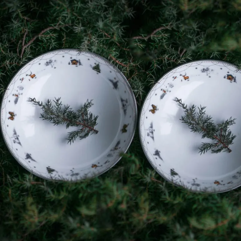 De varme, hvite bollene er dekorert med vakre illustrasjoner av dyr, tradisjonelle hus og trær, inspirert av designer Linda Svedal Walsøes naturopplevelser langs kysten mellom Norge og Sverige. Disse poetiske motivene, kombinert med benporselenets subtile glød, skaper en unik stemning av både tradisjon og modernitet – perfekt for å løfte julestemningen i hjemmet ditt.