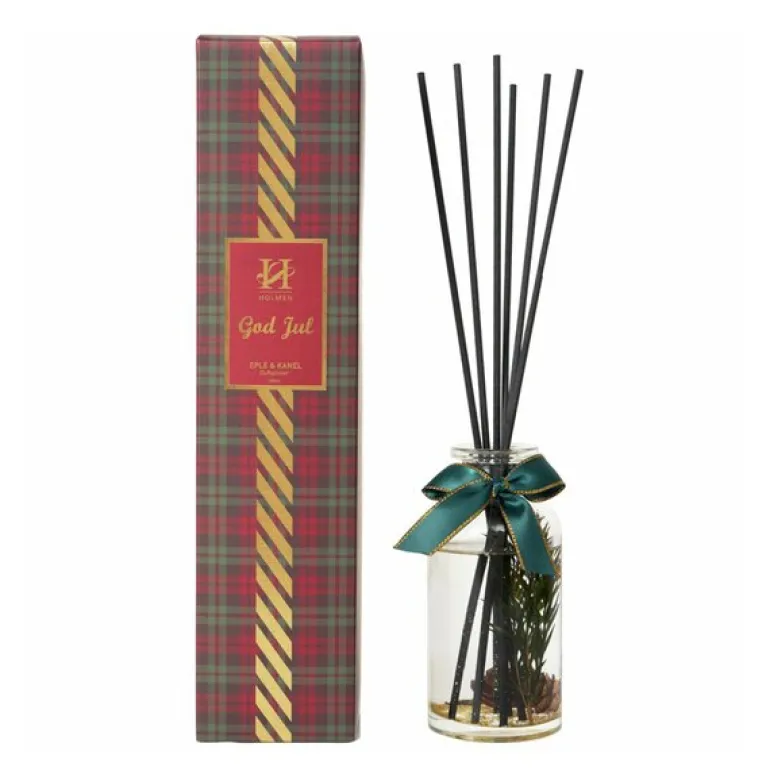 Julian duftpinner Eple & Kanel fra Holmen er det perfekte valget for deg som ønsker å fylle hjemmet ditt med en herlig innbydende duft. Med et stilfullt grønt design og en høyde på 12 cm, er disse duftpinnene både dekorative og effektive når det kommer til å spre en klassisk duft av epler og kanel. Kombinasjonen av søt frukt og varme krydder skaper en stemningsfull følelse som passer like godt under julens høytider som i de kaldere månedene. Julian duftpinner er den ideelle løsningen for å skape en duftopplevelse som omfavner hele hjemmet ditt.