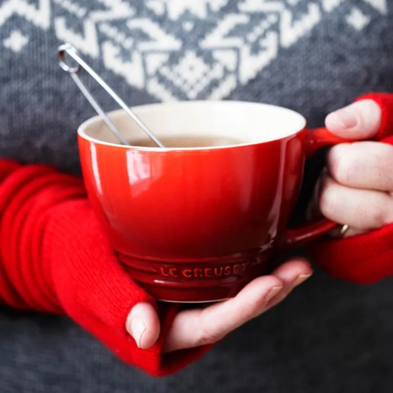 Jumbokoppen fra Le Creuset er en stor kaffekopp med en kapasitet på 40 cl. Den er laget av varmebestandig steintøy i fargen cerise. Perfekt for å nyte en stor kopp te, kaffe eller varm sjokolade med pisket krem. Koppen absorberer ikke smak, lukt eller farge fra drikken din og tåler oppvaskmaskin og mikrobølgeovn. Med sitt unike design og høye kvalitet, er denne jumbokoppen et moderne ikon på kjøkkenet ditt.