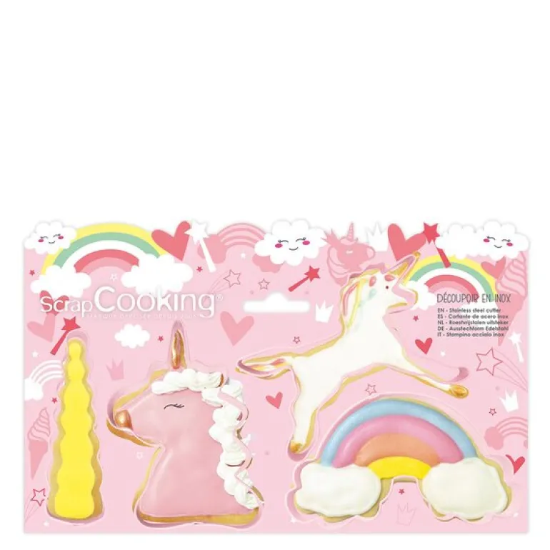 Gjør bakingen eventyrlig med ScrapCooking sitt enhjørning-utstikkersett i rustfritt stål. Settet inneholder fire ulike former som lar deg skape fortryllende kjeks og dekorasjoner – perfekt til barnebursdager, fantasitemaer eller når du vil lage noe litt ekstra magisk.