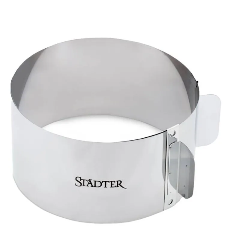 Städters justerbare kakering i rustfritt stål gir deg full fleksibilitet på kjøkkenet. Med en diameter som kan tilpasses mellom 15 og 30 cm og høyde på 9 cm, passer den perfekt til alt fra små desserter til høye lagkaker.