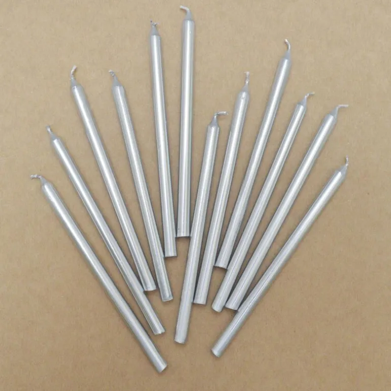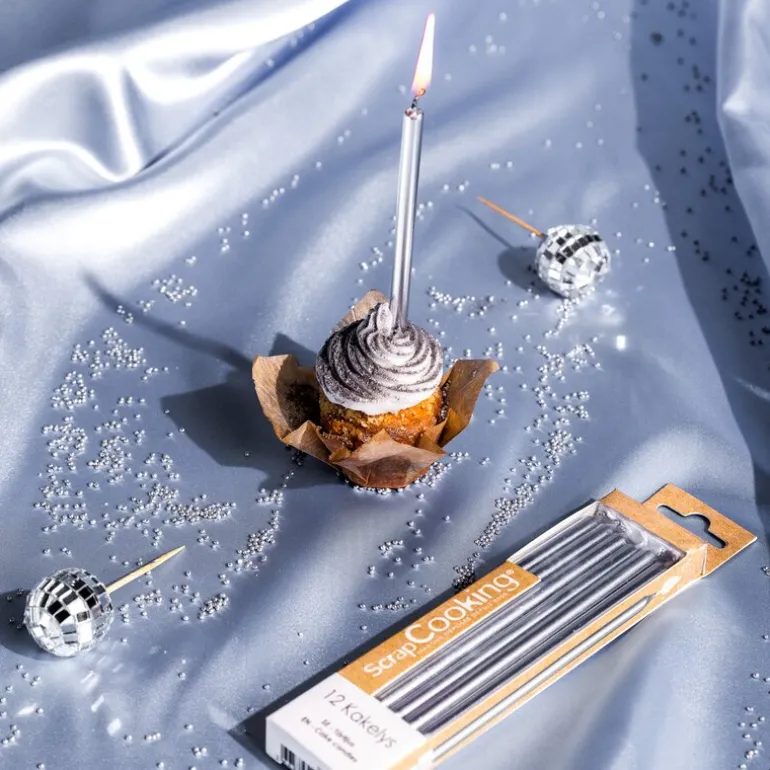 Disse lange kakelysene i sølv fra ScrapCooking er perfekte for å sette en elegant og festlig stemning på kakebordet. Enten det er til bursdag, jubileum eller en spesiell feiring, tilfører de en vakker glød og løfter hele presentasjonen.