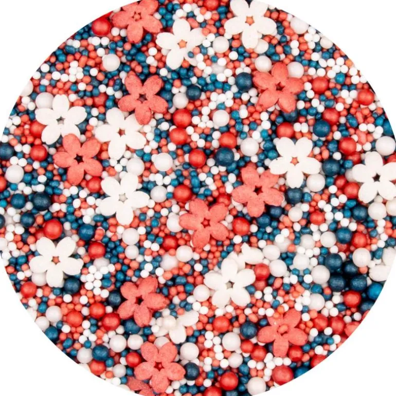 Miksen består av strø i rødt, hvitt og blått som passer til enhver bursdag eller til feiringen av Norges nasjonaldag 17.mai. Bruk strøet som pynt på både cupcakes, kaker, cakepops og cookies.
