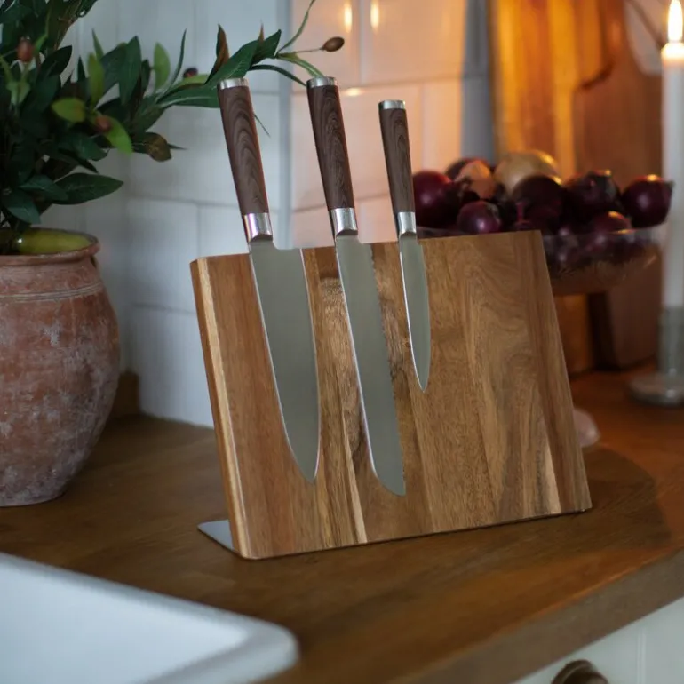Forenkle tilberedningen ved å bruke virkelig skarpe kniver. Kasimas knivsett består av tre praktiske kniver med stilige treimitasjonshåndtak som enkelt skjærer opp brød og grønnsaker. Kasima knivsett i rustfritt stål, kokk, brød, allsidig kniv