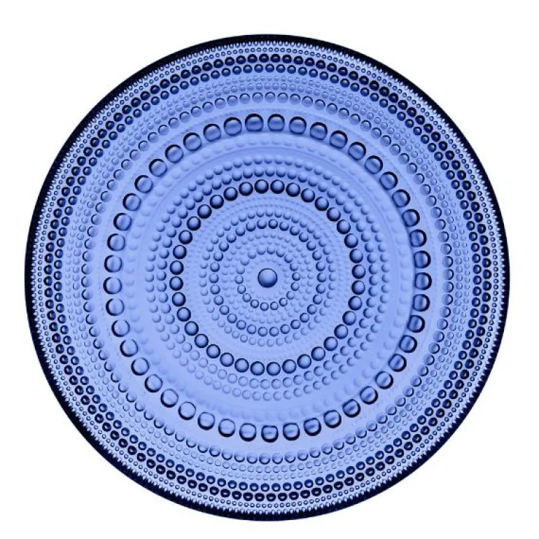 Iittala Kastehelmi tallerken 17 cm i fargen ultramarinblå. Kastehelmi betyr duggdråpe på finsk, og du kan kjenne følelsen av morgenduggen i de uthevede dråpene i Oiva Toikkas ikoniske kolleksjon. Kastehelmi tallerken i den rike, edelstenlignende ultramarinblå er perfekt for tapas, forretter og små godbiter. Kastehelmi er produsert ved Iittala glassfabrikk i Finland.