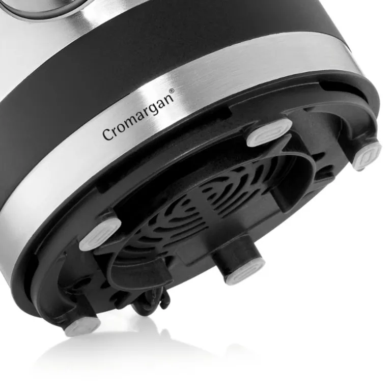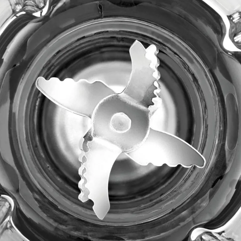 Den minste Cromargan®-bordmikseren overbeviser med en kraftig motor: 400 watt, 20 000 o/min, 241 km/t. Alt etter behov er det fem hastighetstrinn og et pulseringstrinn til rådighet. Takket være WMF Perfect Cut er mikseren utstyrt med en seksdobbelt kniv av rustfritt stål. Den avtakbare 0,8 liters glasskannen med praktisk lokk med påfyllingsåpning og integrert doseringsbeger gjør bruken mye lettere. Gummiføtter garanterer en sikker oppstilling.