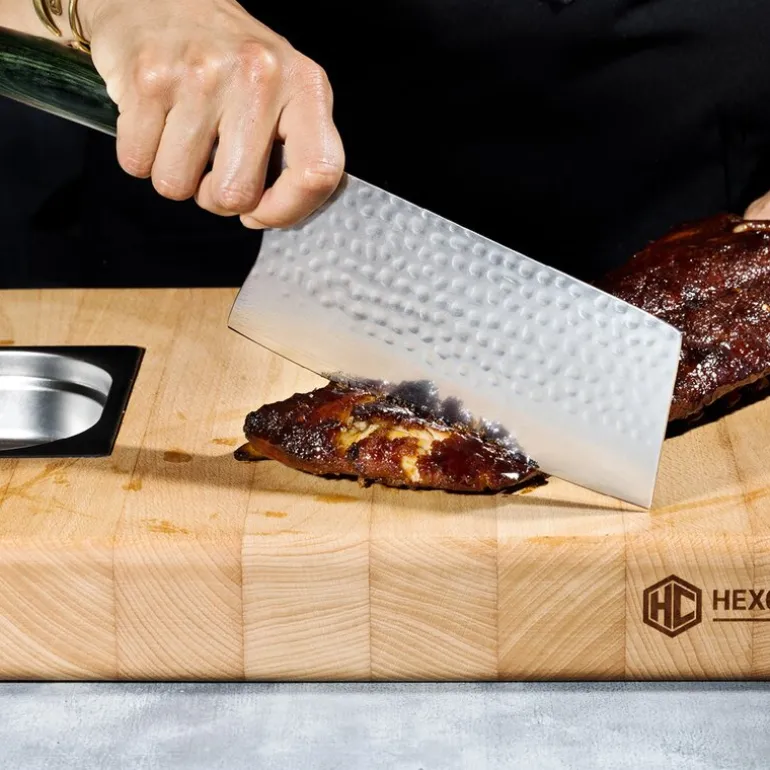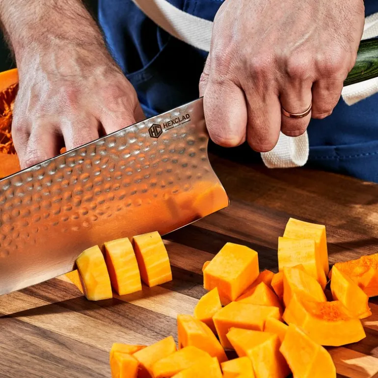 Hexclads kinesiske kokkekniv er utviklet i samarbeid med den berømte kokken Gordon Ramsay, og den er skapt for å gjøre selv de mest krevende oppgavene på kjøkkenet enklere. Med denne kniven i hånden kan du håndtere alt fra finhakking av urter til å skjære gjennom store kjøttstykker med letthet. Den er perfekt balansert, noe som gir deg full kontroll over hvert eneste kutt, og dens kraftige blad kan ta seg av oppgaver som kan være for utfordrende for vanlige kokke- eller santoku-kniver.