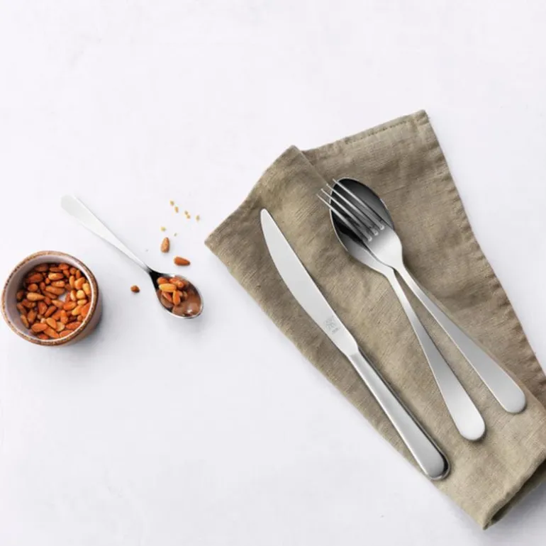 Settet er laget av 18/10 rustfritt stål av høy kvalitet, blankpolert og den harde kvaliteten på stålet gjør at bestikket er meget motstandskraftig mot rust og riper. Det gjør også at bestikket beholder sin blankhet og finish lenge – og kan vaskes i oppvaskmaskin. Bestikket er slipt og polert overalt, noe som gir dem en behagelig følelse og ligger godt i hånden.